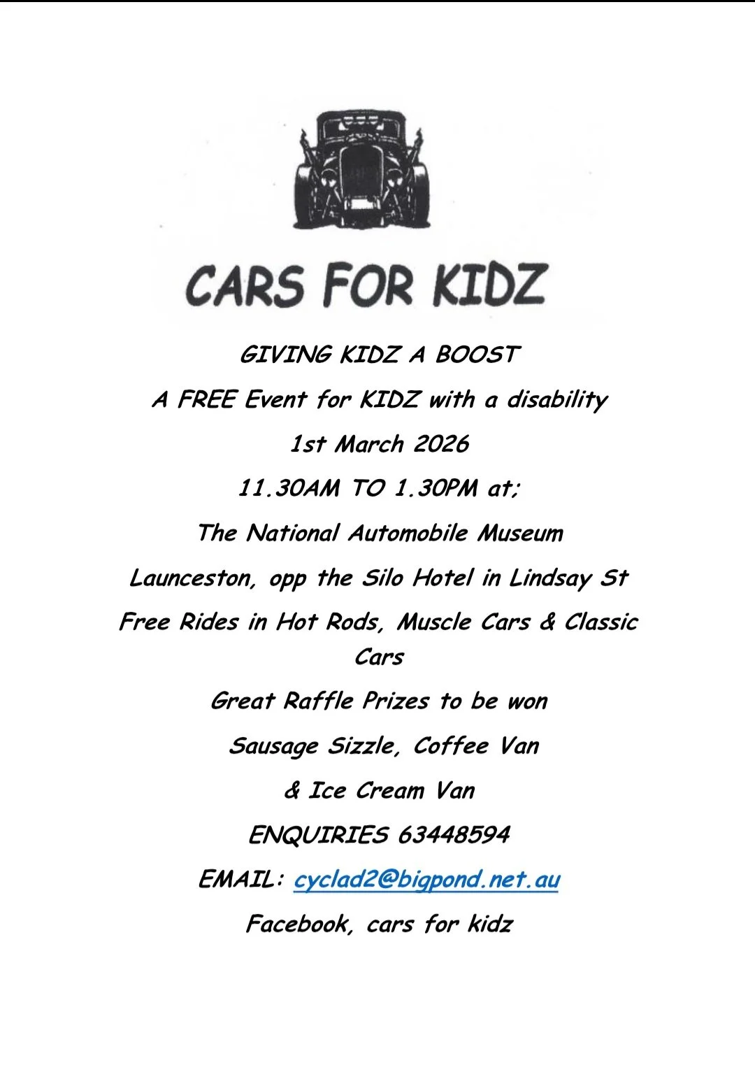 Community North resident Alan is a passionate classic car enthusiast and has been instrumental in creating this event for kids with a disability. Come along to this free event and have a ride in a hot rod, muscle car or a classic car!