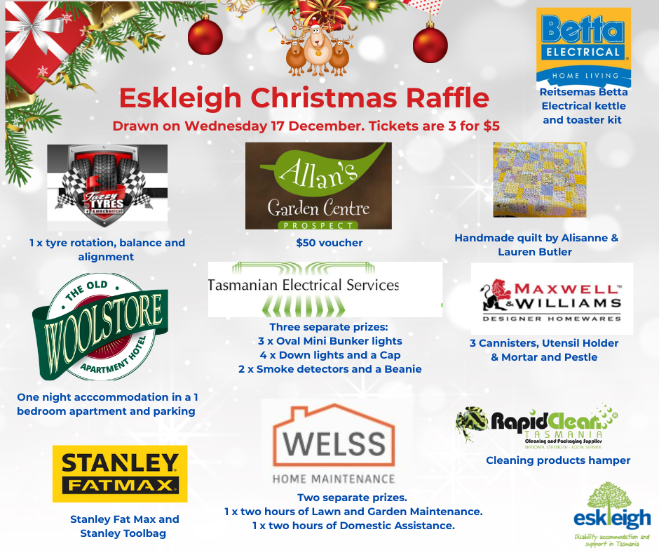 Tasmanian Electrical Services donated 3 separate prizes bunker lights - won by Tammie ticket B26, Down lights won by Tracey ticket A66 and Smoke detector won by Carolyn ticket B47